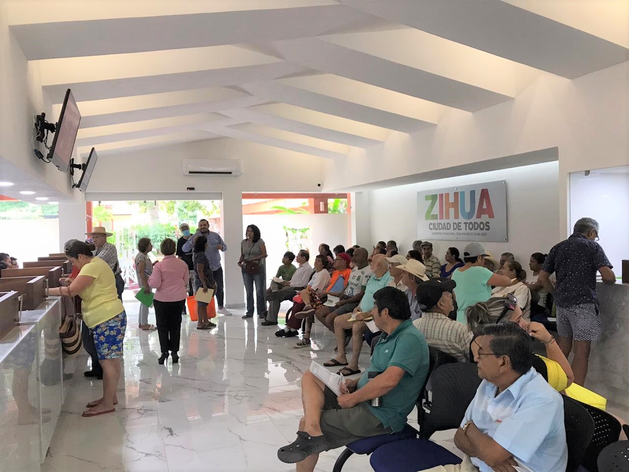 Desde este lunes y derivado del estímulo fiscal autorizado por el Ayuntamiento que encabeza el presidente Jorge Sánchez Allec, vigente para diciembre de 2019 y enero de 2020 con un descuento del 15 por ciento, contribuyentes del impuesto predial que radican en el municipio y muchos otros que se encuentran vacacionando en el destino de playa, empezaron a abarrotar el área de Ingresos para cumplir con el pago de dicho gravamen, contando para ello con un espacio dignificado recientemente para brindar una atención más eficiente a quienes con sus contribuciones fortalecen las finanzas municipales y facilitan con esos recursos la realización de obras en beneficio de la gente de Zihuatanejo.