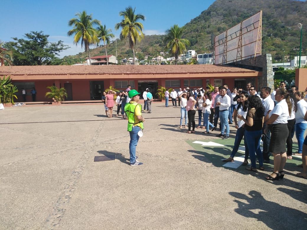 Con la finalidad de fomentar la cultura de la prevención en la población del municipio, el gobierno que encabeza el presidente Jorge Sánchez Allec se sumó este lunes al primer Macrosimulacro 2020, que a nivel nacional se llevó a cabo por la ocurrencia de un sismo hipotético de magnitud 7.0, con epicentro en el Estado de México. En el palacio municipal de Zihuatanejo funcionarios y trabajadores fueron alertados a las 11:00 horas para que desalojaran sus respectivas áreas de labores y se concentraran en la explanada de la sede gubernamental, apoyados por integrantes del Comité Interno de Respuesta Inmediata de la dirección de Protección Civil y Bomberos.