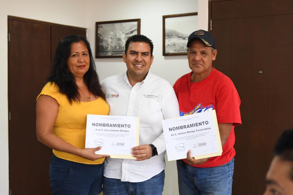 Zihuatanejo, Gro., 5 de febrero de 2020.- Al reunirse este miércoles en la sala de cabildos con los integrantes de 5 nuevos comités del programa Mano con Mano, el presidente Jorge Sánchez Allec les entregó los nombramientos respectivos a quienes encabezan estos grupos de vecinos y les informó que próximamente se iniciarán las obras que en su momento se acordaron, en el rubro de infraestructura vial, que se ejecutarán con el apoyo material del Ayuntamiento y la participación activa de los ciudadanos, destacó el primer edil zihuatanejense.