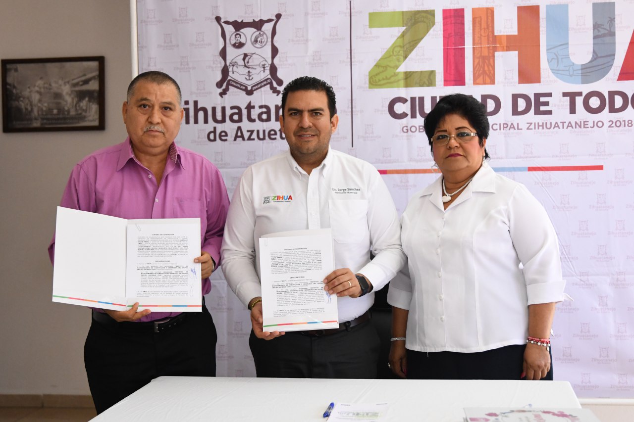 Zihuatanejo, Gro., 18 de febrero de 2020.- Con la firma de un convenio de colaboración entre el Ayuntamiento de Zihuatanejo y el Instituto de Mantenimiento en Computación y Enseñanza del Idioma Inglés (IMCI), representado por Santiago Duque Pineda, el presidente Jorge Sánchez abrió la posibilidad de que los trabajadores del gobierno municipal y sus hijos puedan ser beneficiados con una beca educativa de excelencia, que les permitirá capacitarse a través de asignaturas en Computación, Inglés, Diseño Gráfico y Administración; reparación de computadoras y regularización de matemáticas.