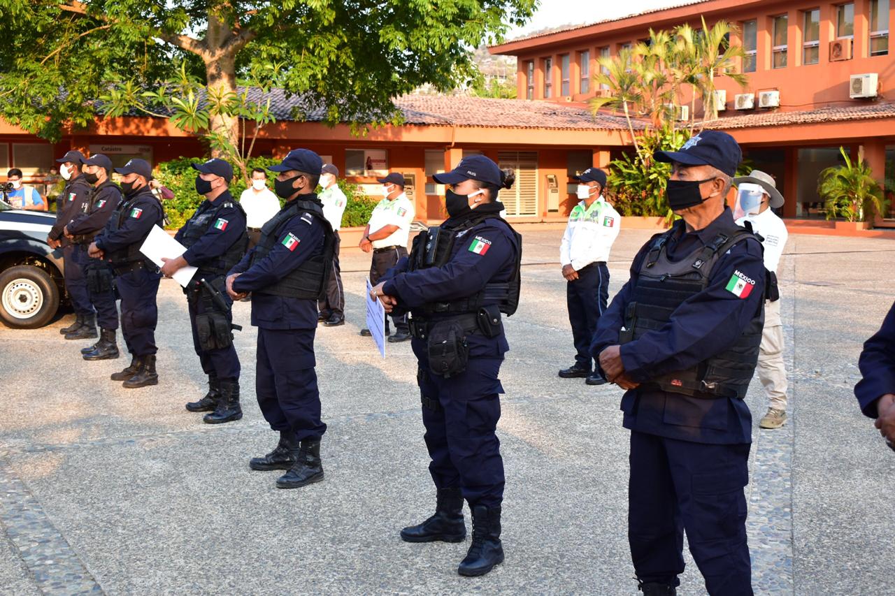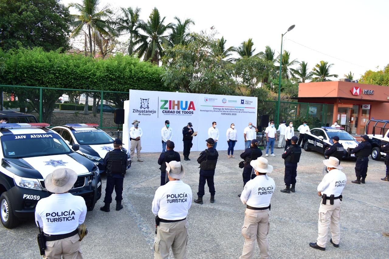 El presidente municipal, Jorge Sánchez Allec hizo entrega de vehículos, homologación y nivelación salarial FORTASEG 2020 a las tres corporaciones policiacas preventiva, turística y vial con la finalidad de que en esta contingencia sanitaria se puedan desplegar más elementos a las calles y reforzar el apoyo para cuidar de los ciudadanos. “Para nosotros es importante seguir reforzando la seguridad ciudadana” dijo el alcalde de Zihuatanejo Jorge Sánchez, quien estuvo acompañado por integrantes del Cabildo y el director de Seguridad Publica, Gildardo Justo Zurita.