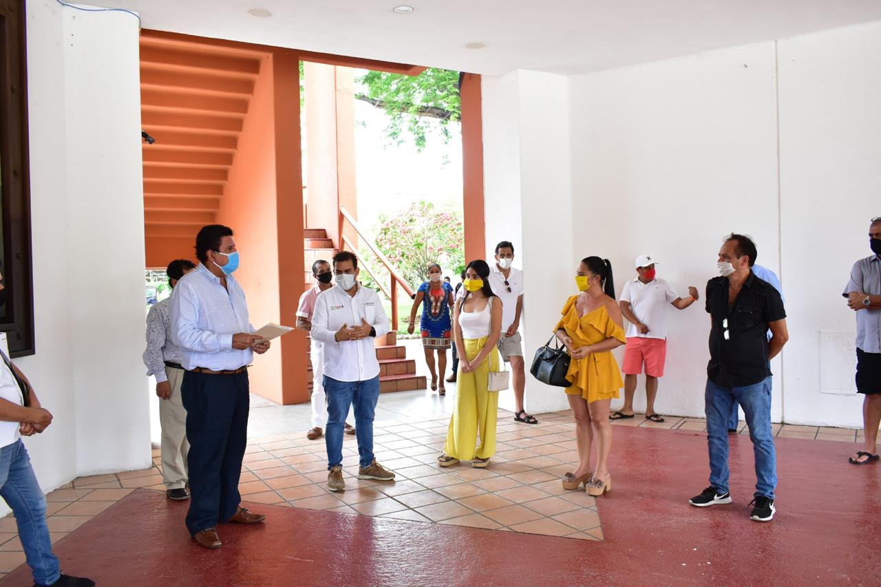 El presidente Jorge Sánchez Allec junto al ingeniero Alejandro Bravo Abarca, jefe de la oficina del gobernador, sostuvieron una reunión con integrantes de la CANIRAC encabezados por su presidenta Rebeca Farías Salazar expresándoles el apoyo por parte del gobierno estatal y municipal ante esta contingencia. El alcalde Sánchez Allec dijo que están ocupados en el tema de salud, pero también en el económico, es tarea de todos que poco a poco se vayan reactivando los sectores, entre ellos el turístico.