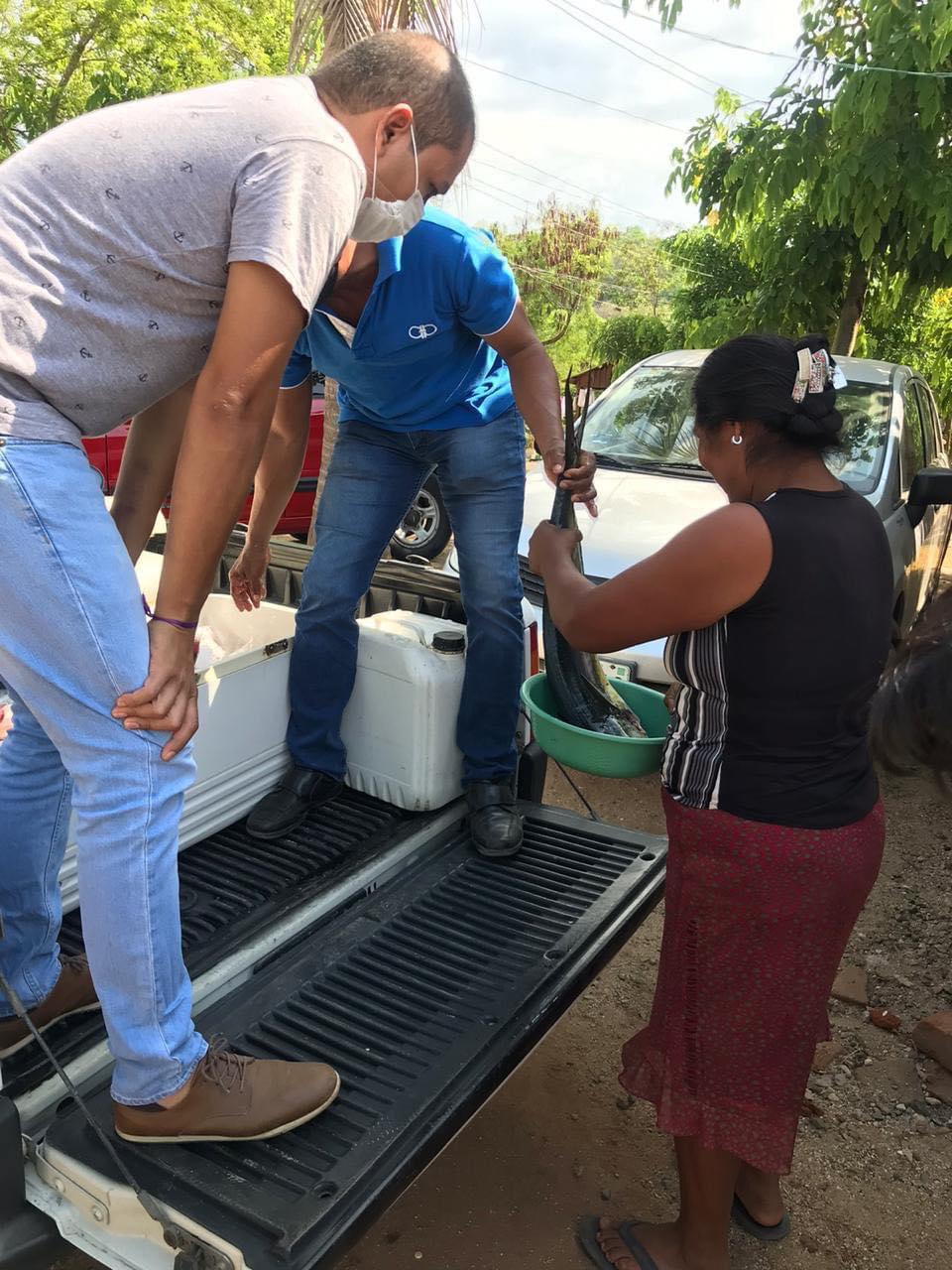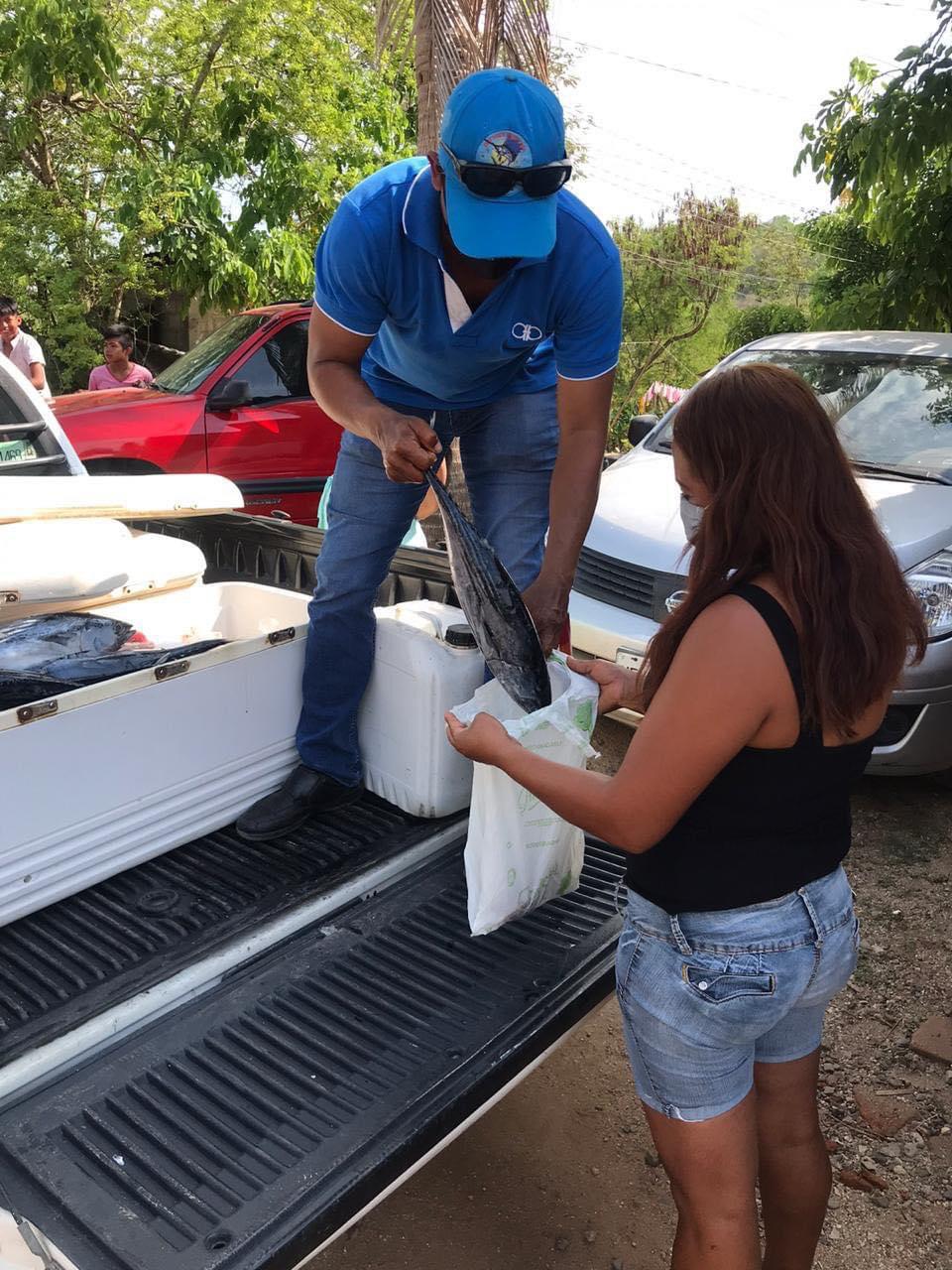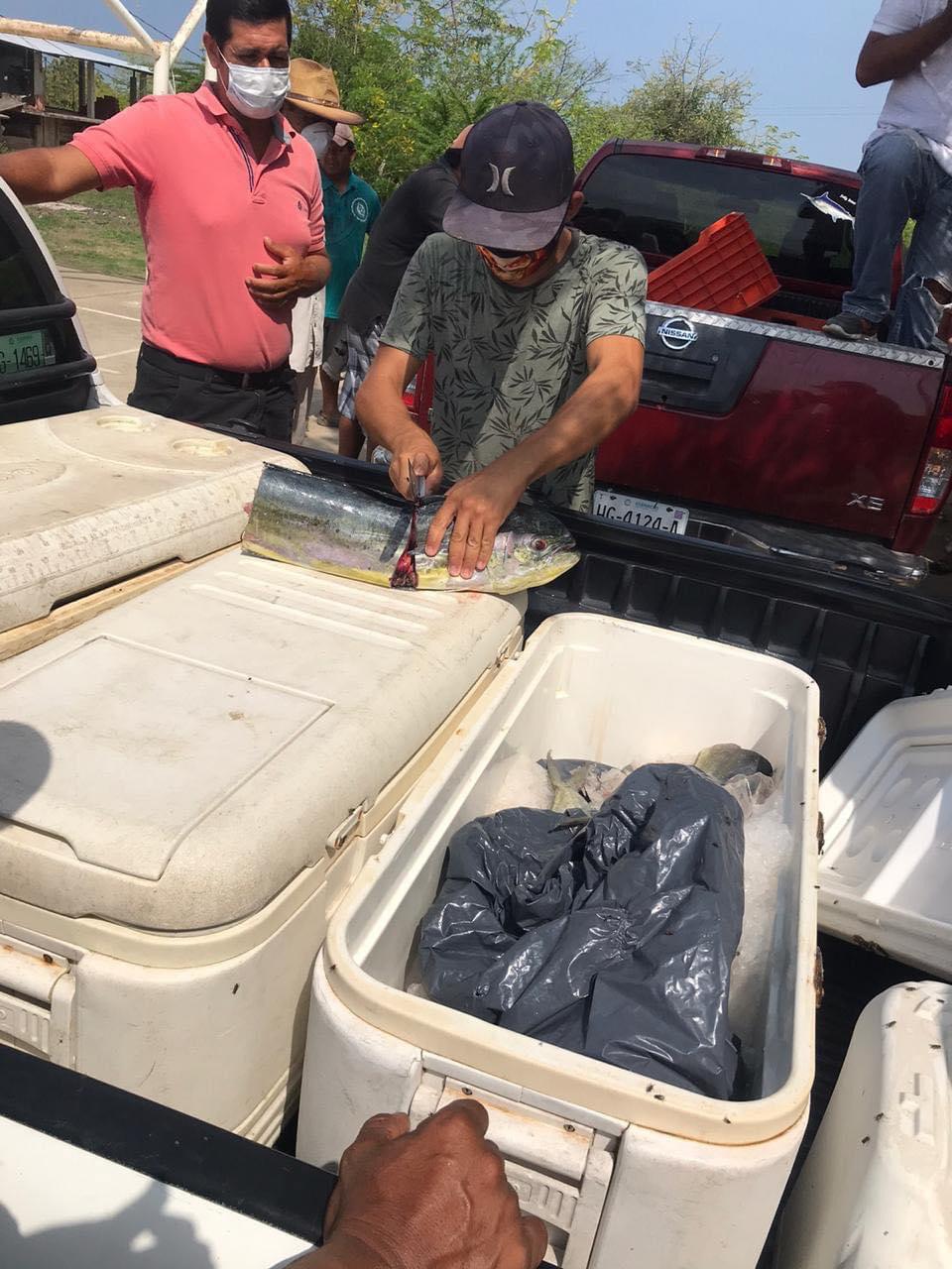 Por instrucciones del presidente Jorge Sánchez Allec, la dirección de pesca coordinó esfuerzos con los amigos Damian, Benjamín, Roberto, Helio, José Manuel y Juan Carlos, integrantes de la “Federación de Cooperativas Pesqueras Ribereñas y Acuícolas de Zihuatanejo de Azueta” con quienes hicieron equipo para beneficiar a más de 450 familias de la colonia Las Pozas de la comunidad del Coacoyul, a quienes se les entregó pescado fresco. Esta es una acción más del gobierno de Zihuatanejo para apoyar a las personas que más lo necesitan ante el COVID-19.