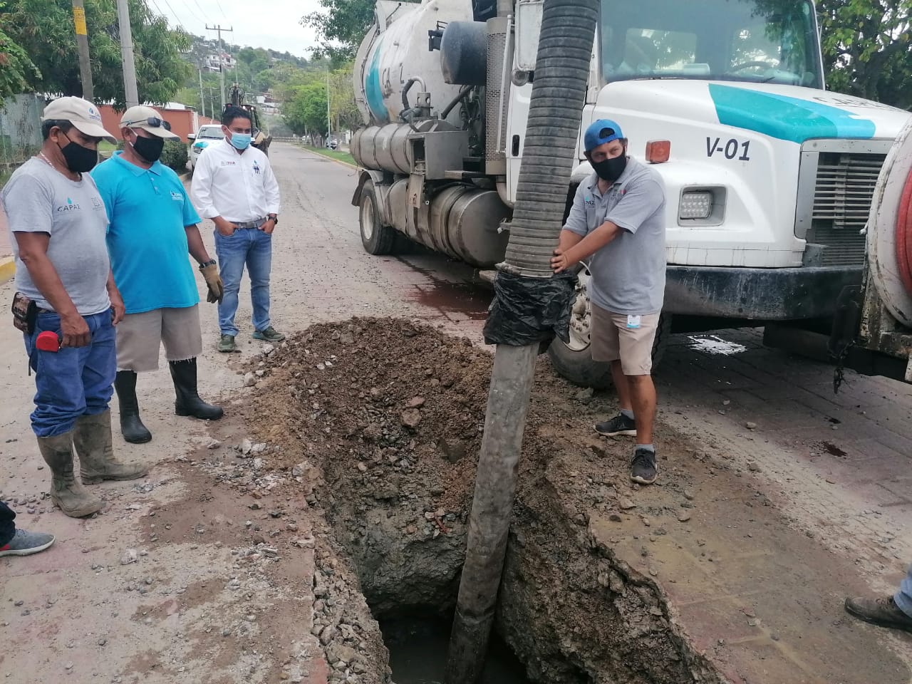 Cientos de familias serán beneficiadas con la rehabilitación del colector sanitario en avenida Paseo de Las Salinas, que por instrucción del Presidente municipal Jorge Sánchez Allec, fue realizada por trabajadores de la la Comisión de Agua Potable y Alcantarillado de Zihuatanejo (CAPAZ).