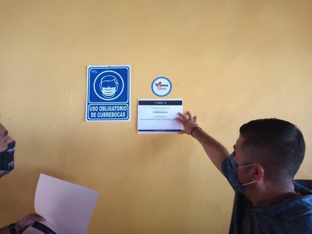 Atendiendo las instrucciones del presidente municipal Jorge Sánchez Allec, personal de Reglamentos junto a otras dependencias municipales llevaron a cabo recorridos de verificación por diferentes negocios de la ciudad como parte del Plan de Reactivación Económica denominado “Vamos Zihua”, a través del cual dichos establecimientos de diferentes giros comerciales están recibiendo su distinción para poder reaperturar su negocios, tras cumplir con una serie de requisitos solicitados por el gobierno federal, estatal y municipal ante la contingencia COVID-19.