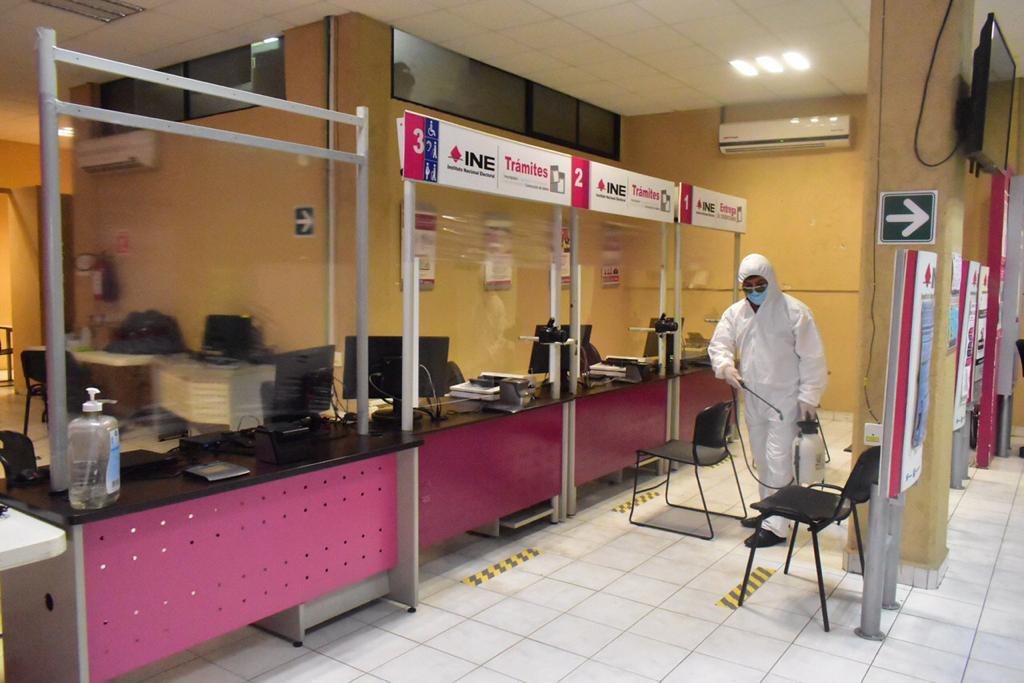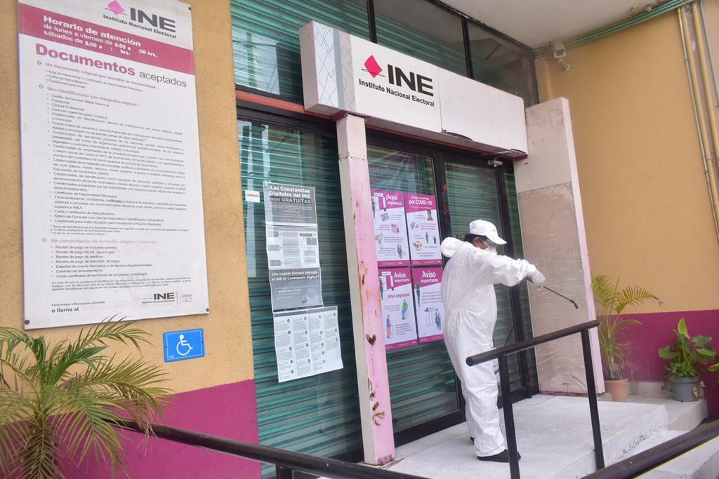 El gobierno municipal a través de las brigadas de sanitización en coordinación con la junta distrital 03 del INE JD03 Guerrero realizó una campaña de sanitización en esas instalaciones tras la reapertura que dio inicio este lunes 03 de agosto con la finalidad de evitar la propagación del COVID-19 entre los usuarios que requieran de este servicio.