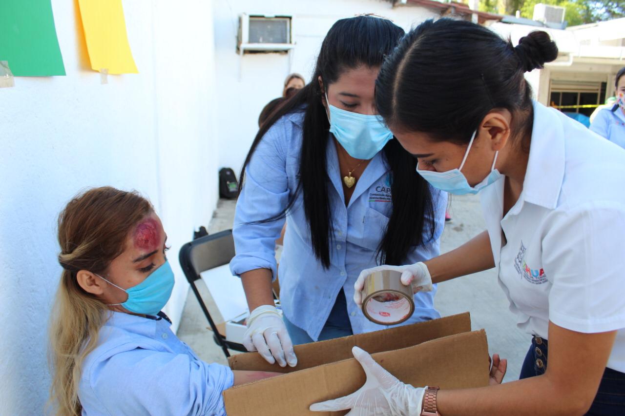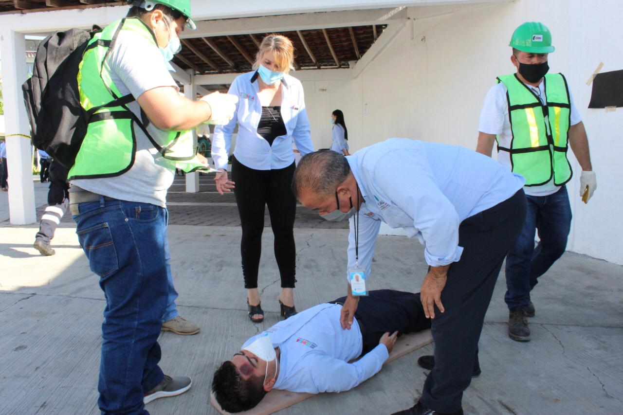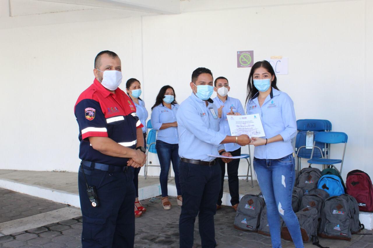 La capacitación terminó con la elaboración de un simulacro de sismo y la entrega de constancias y una mochila utilitaria para cada integrante del Consejo de Protección Civil con equipo de Protección Personal.