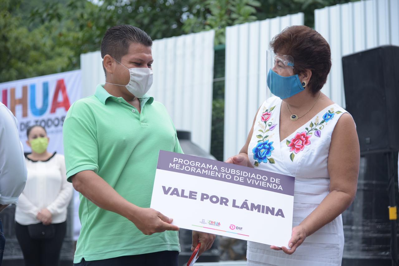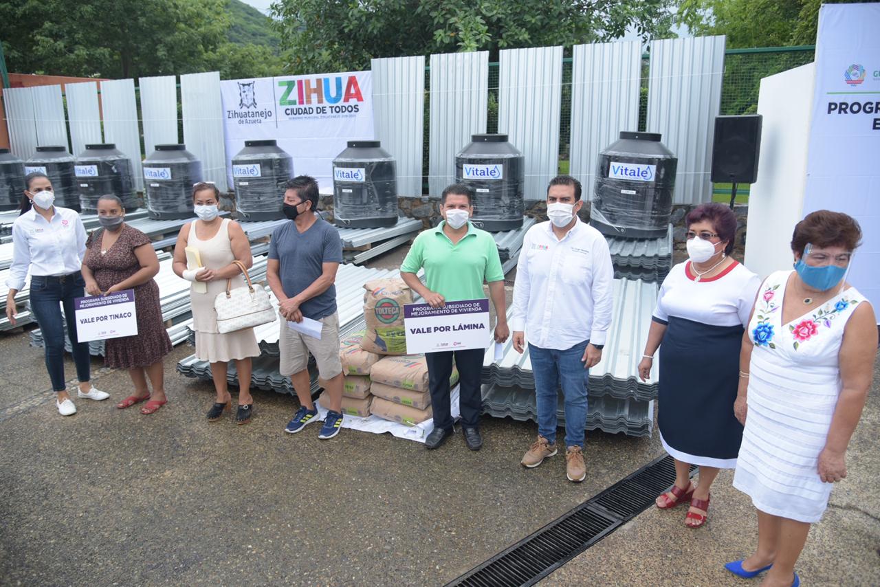 *Zihuatanejenses son beneficiados con entrega de tinaco, lámina galvanizada y bultos de cemento.