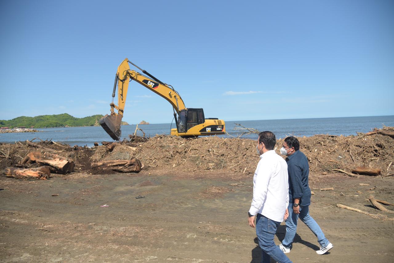 En un recorrido efectuado este martes por la mañana, y dando cumplimiento a su palabra empeñada con las personas afectadas de playa Linda, el presidente Jorge Sánchez Allec informó que se tiene un avance significativo en el retiro de desechos y estimó que unos 10 días aproximadamente concluirán estos trabajos.