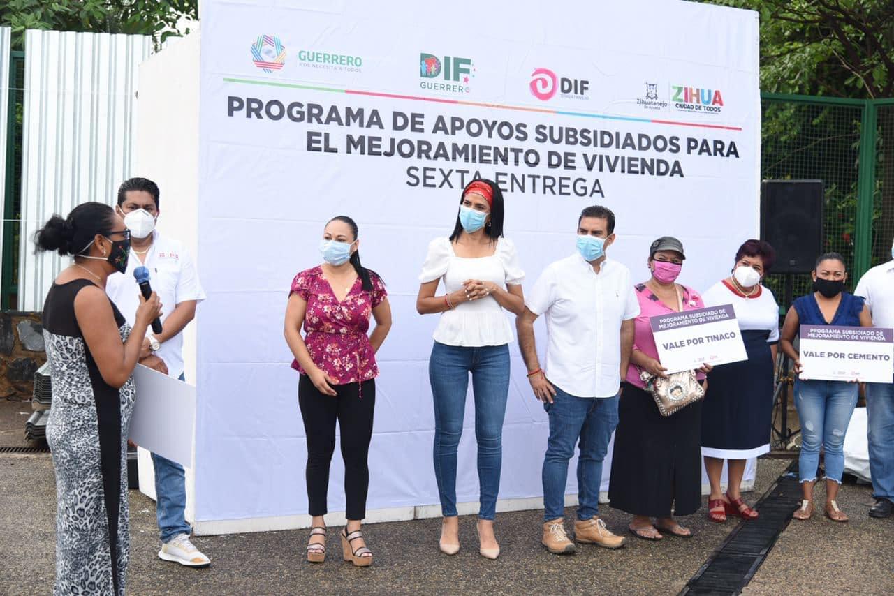 Beneficiando a 467 familias con la sexta entrega del Programa de apoyos subsidiados para el mejoramiento de sus viviendas, este lunes y dando inicio al tercer año de gobierno, el presidente Jorge Sánchez y el DIF Zihuatanejo que preside Lizette Tapia Castro, hicieron entrega de dichos apoyos consistentes en lámina galvanizada, tinacos de 1,100 lts y bultos de cemento, dando a conocer que hasta el momento con este programa se han beneficiado 3800 familias y se pretende concluir el año con 10 mil personas beneficiadas, esto con el apoyo del gobierno del estado que preside Héctor Astudillo Flores y que permite mejora las condiciones de su hogar y representa un ahorra en su economía.