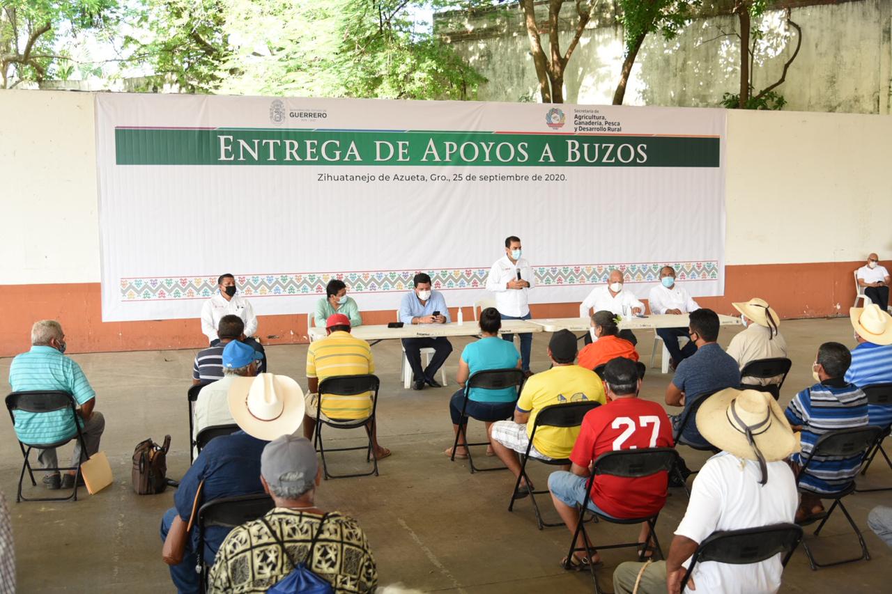 Con la finalidad de ayudar en la economía de cientos de buzos, el gobierno del estado que preside Héctor Astudillo y el gobierno de Zihuatanejo que encabeza Jorge Sánchez Allec, hicieron la entrega de apoyos a Buzos como parte del programa Fenómeno Mar de Fondo.