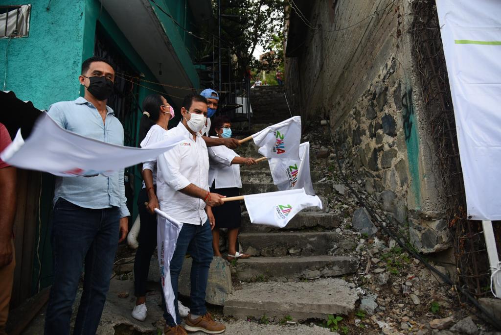 El presidente Jorge Sánchez dio el banderazo de arranque del Andador 5 de Mayo en la colonia Primer Paso y del andador número 8 colonia Vicente Guerrero, sumándose a las otras obras que ha puesto en marcha durante las últimas semanas.