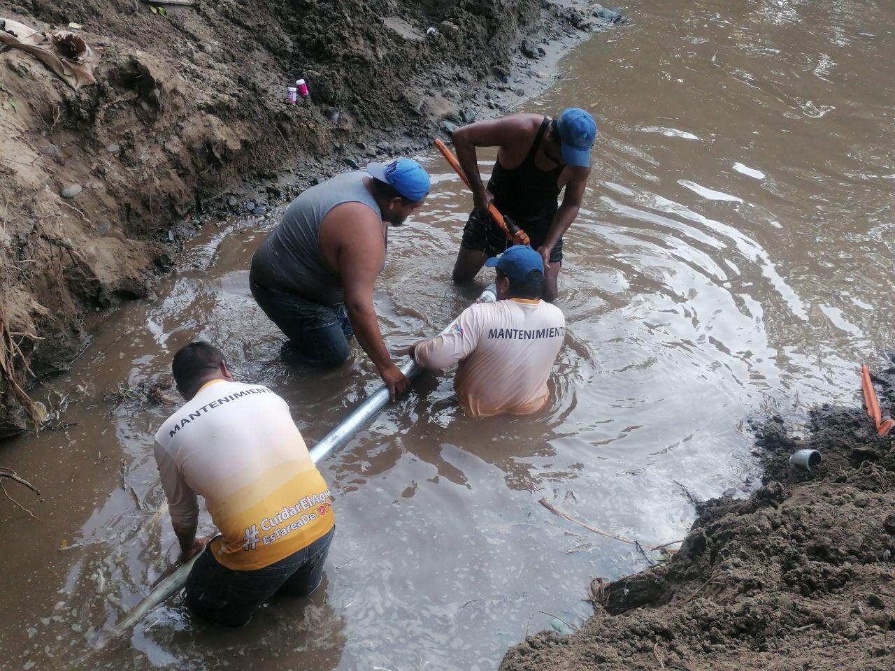 Luis Fernando Salas Reyes, director del organismo explicó que los trabajos a cargo de personal operativo con el apoyo de maquinaria pesada consistieron en la reparación de 36 metros lineales de la línea de conducción principal en tubo galvanizado de 4" y 2 1/2" de diámetro.