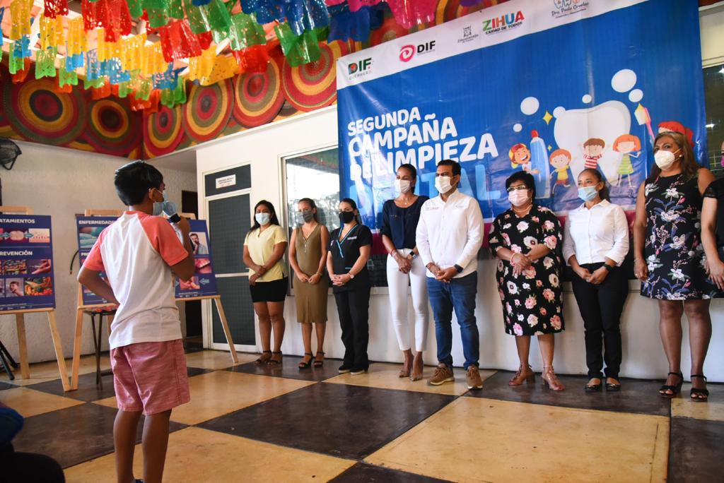 En la Segunda campaña de Limpieza Dental que realiza el gobierno municipal que preside el alcalde Jorge Sánchez Allec a través del DIF se beneficiarán 200 niños los cuales recibieron el apoyo y solidaridad del gobierno municipal. El presidente Jorge Sánchez junto a su esposa Lizette Tapia agradeció a las doctoras por ser parte de esta segunda campaña.