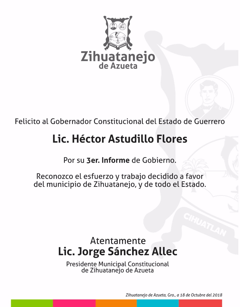 Felicitación al Gobernador Héctor Astudillo