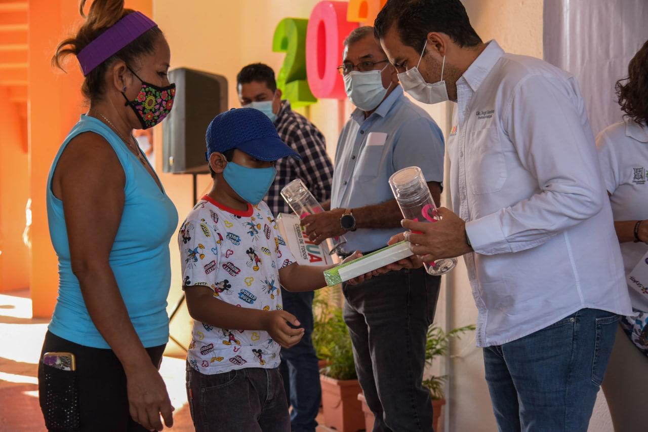 Junto a su esposa Lizette Tapia Castro el presidente Jorge Sánchez Allec, hizo entrega de las primeras 200 tabletas electrónicas subsidiadas por el Ayuntamiento de Zihuatanejo, en un programa denominado “Todos Conectados” que diseñó y está impulsando la actual administración a través del DIF municipal para los niños estudiantes porque la pandemia hoy exige que se tomen las clases desde casa, y para esta administración municipal era muy importante ayudar a los padres de familia. Cabe destacar que este es un programa como muchos otros que esta llevando a cabo el gobierno municipal con la única finalidad de apoyar a las familias de Zihua.