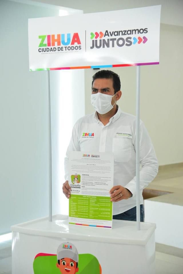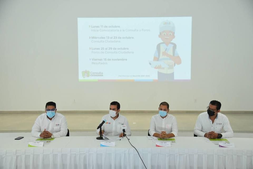 El presidente Jorge Sánchez Allec informó en conferencia de prensa sobre la Consulta Ciudadana que habrá de realizarse del 13 al 23 de octubre del presente año, así como los cinco Foros de Consulta Ciudadana por cada eje temático los días 25, 26, 27, 28 y 29 de este mismo mes en el Auditorio Zihua y que serán la guía para la elaboración del Plan Municipal de Desarrollo para el periodo 2021-2024.
