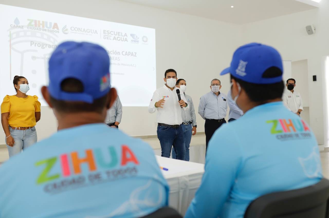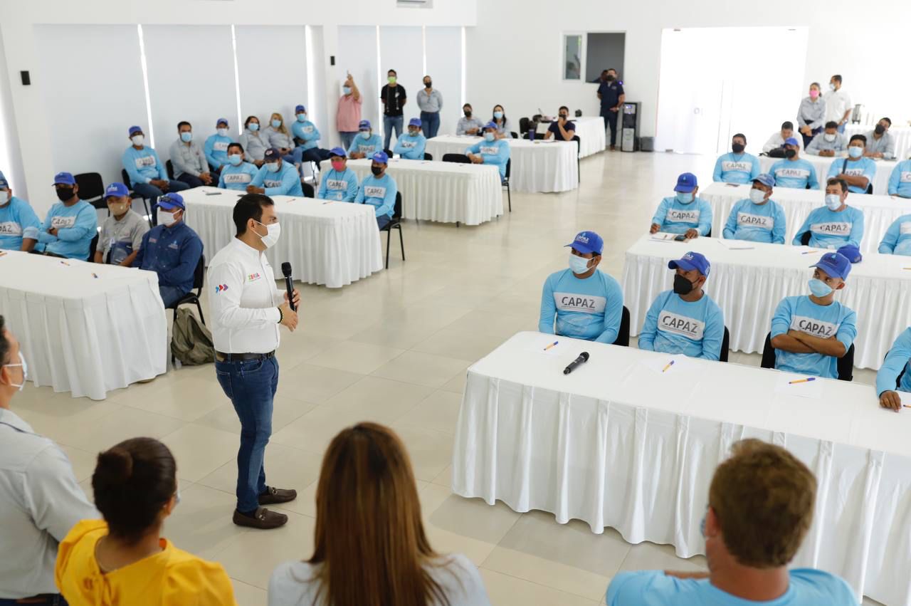 En su mensaje, el alcalde Jorge Sánchez Allec afirmó que el trabajo operativo y técnico del personal de la CAPAZ es lo que le da vida al organismo, “porque finalmente, nosotros podremos hacer muchos esfuerzos, pero sin la ayuda de ellos en las plantas, en la distribución, en la administración, no somos un organismo, así que vale mucho la pena que ellos hoy reciban esta importante capacitación”.
