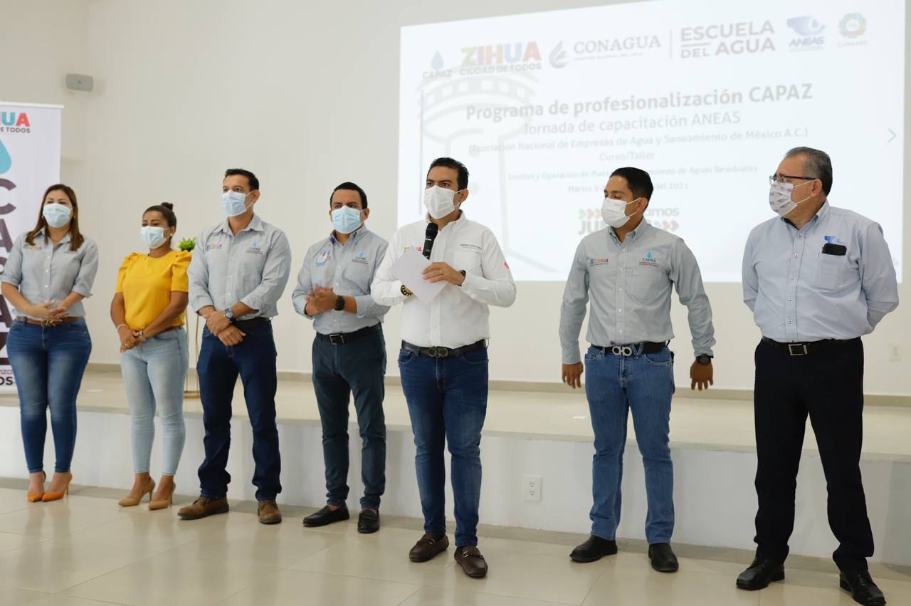 El presidente Jorge Sánchez Allec, acompañado de miembros del Cabildo y directores de áreas municipales, inauguró este martes el curso taller de capacitación Gestión y Operación de Plantas de Tratamiento de Aguas Residuales, que por parte de la Asociación Nacional de Empresas de Agua y Saneamiento de México, A. C., se impartió a trabajadores de la Comisión de Aguas Potable y Alcantarillado de Zihuatanejo.