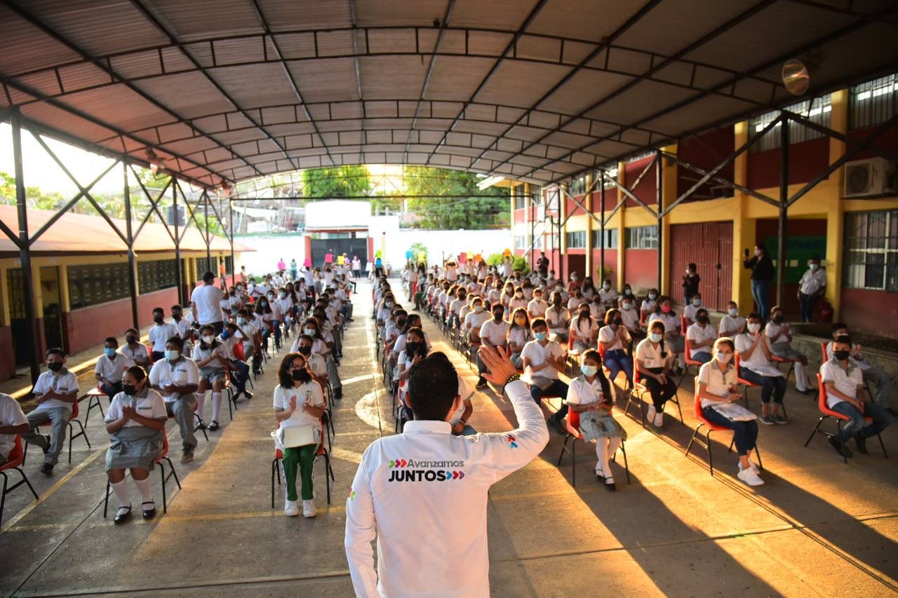 Presidente Jorge Sánchez entrega uniformes a escuelas secundarias