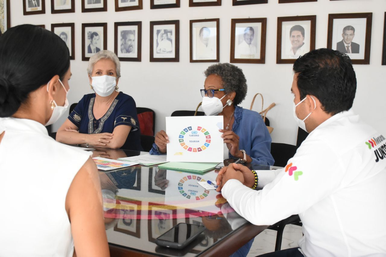Mientras que el alcalde Jorge Sánchez Allec, al tiempo de reconocer el trabajo que realiza May Peace Prevail on Earth International a favor de la paz, les entregó a Gabriela Pasquel García, a Patricia Ann Talley, directora internacional del Programa de Desarrollo de Sostenibilidad de Amigos por la Paz, y otras personas que las acompañaban, ejemplares del recién impreso Plan Municipal de Desarrollo de Zihuatanejo de Azueta.