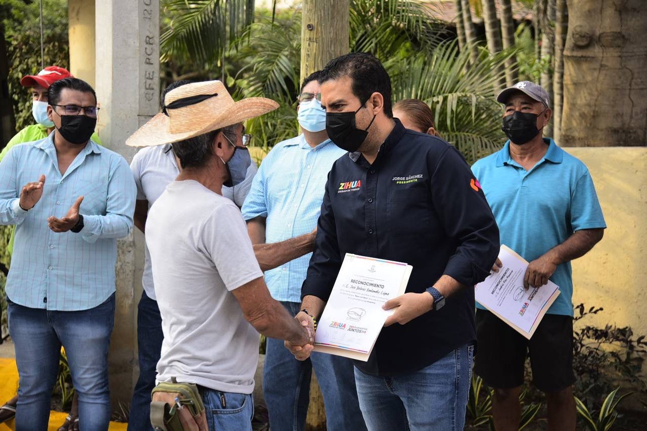 Como parte de su agenda de trabajo de la presente semana, el presidente Jorge Sánchez Allec visitó este lunes la delegación municipal de Los Almendros, donde junto con integrantes de la Comuna, habitantes de la comunidad y colaboradores del gobierno de Zihuatanejo de Azueta, inauguró la pavimentación de una de las calles principales del centro de población, obra realizada con recursos del programa Mano con Mano.