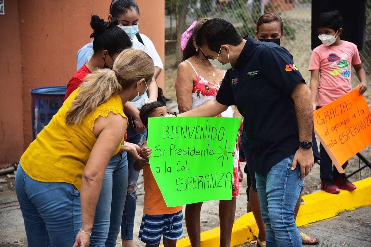 Presidente Jorge Sánchez Allec entrega dignificado acceso principal a colonia La Esperanza