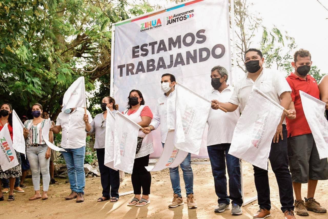 Al seguir cumpliendo en tiempo y forma los compromisos de su agenda de prioridades, con la entrega o inicio de las obras que más necesitan las familias de Zihuatanejo, el presidente Jorge Sánchez Allec, junto con integrantes de la Comuna y directores municipales, visitó este miércoles la colonia Lomas Diamante, donde dio el banderazo de arranque de los trabajos de pavimentación de una calle, que se realizará a través del programa Mano con Mano.