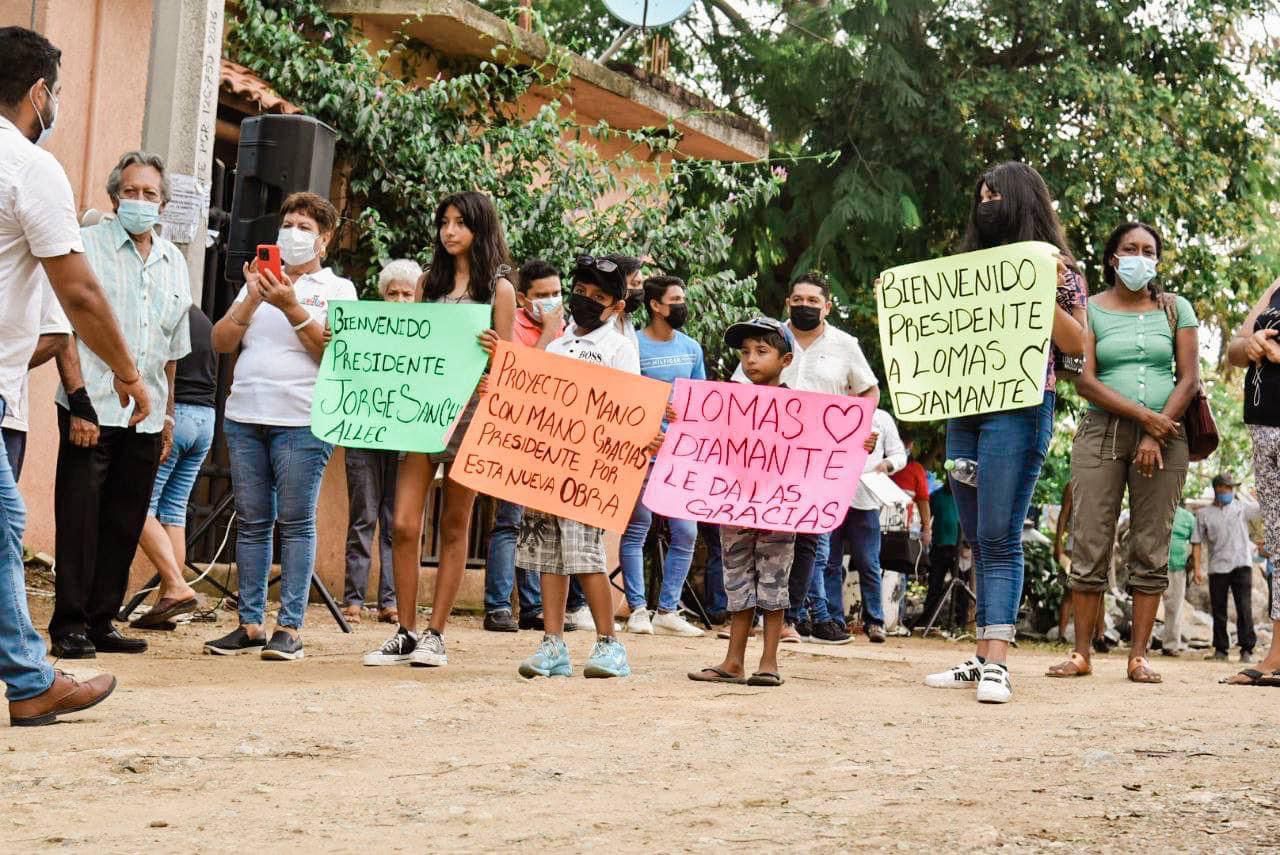 Con pancartas en mano donde se podía leer palabras de agradecimiento para la administración municipal, vecinos y líderes naturales de esa colonia dieron la bienvenida al presidente Jorge Sánchez y reconocieron desde hace varios años ningún otro presidente había tenido la solidaridad con ellos y la preocupación por mejorar las condiciones de vida de esa colonia.