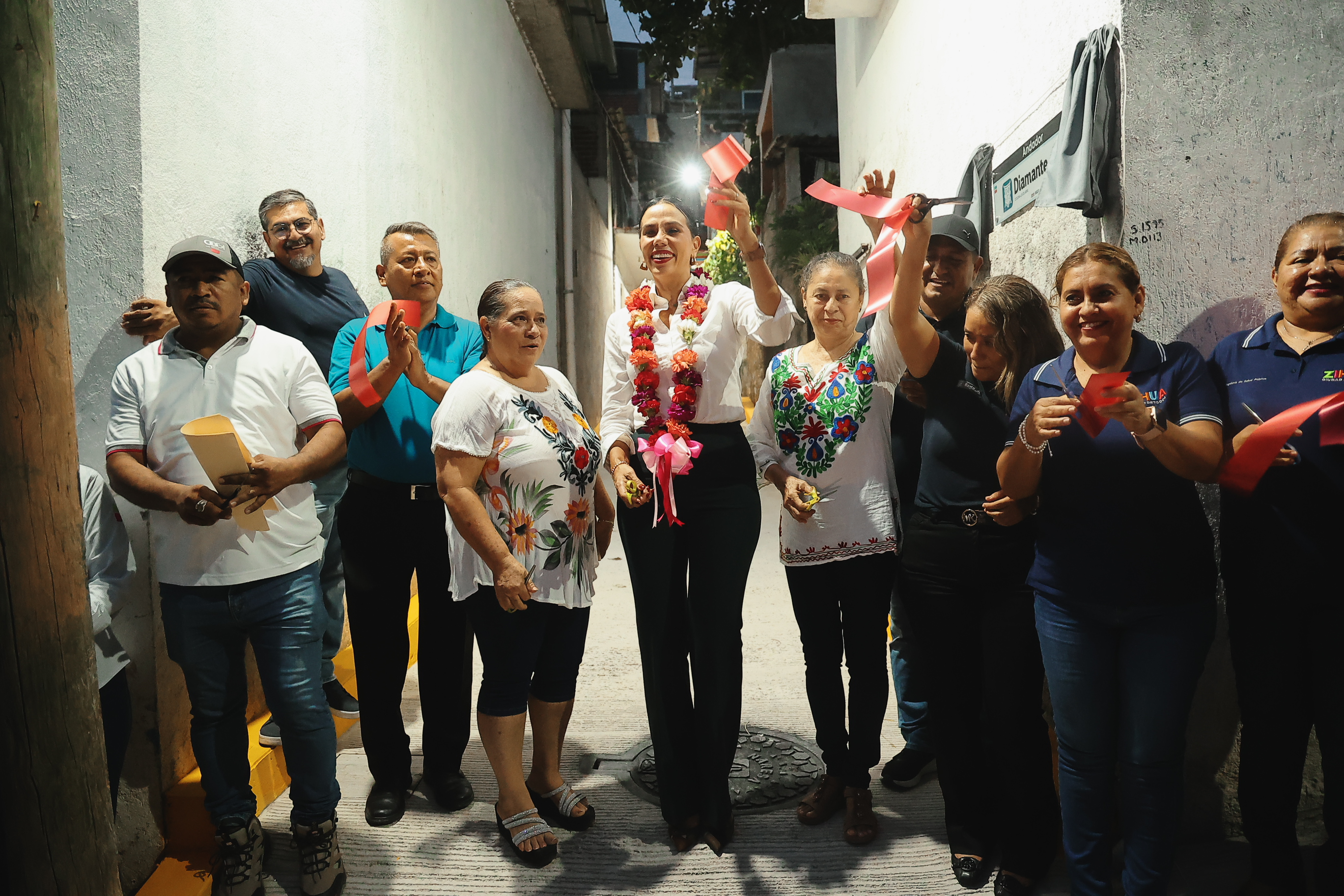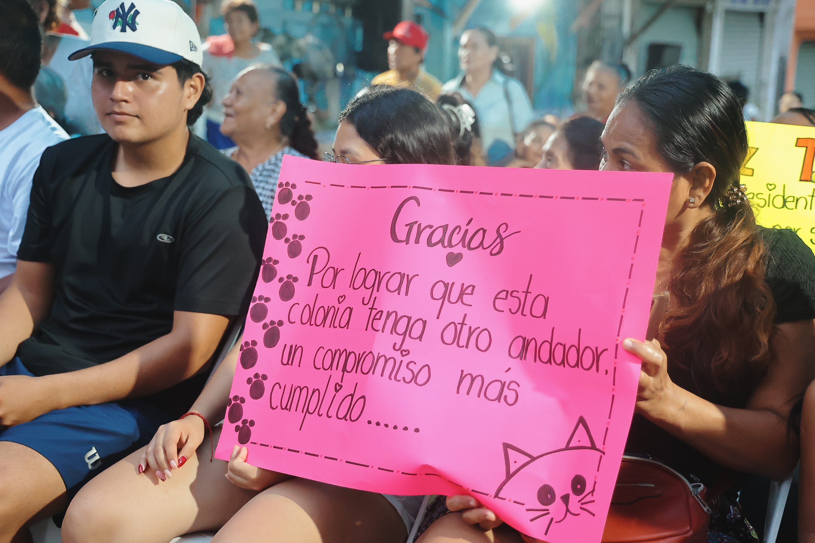 La presidenta Lizette Tapia Castro visitó este martes la colonia 24 de Abril, donde en compañía de integrantes del Cabildo y directores municipales, encabezó la inauguración del andador Diamante, una obra esperada por muchos años por las familias del lugar.