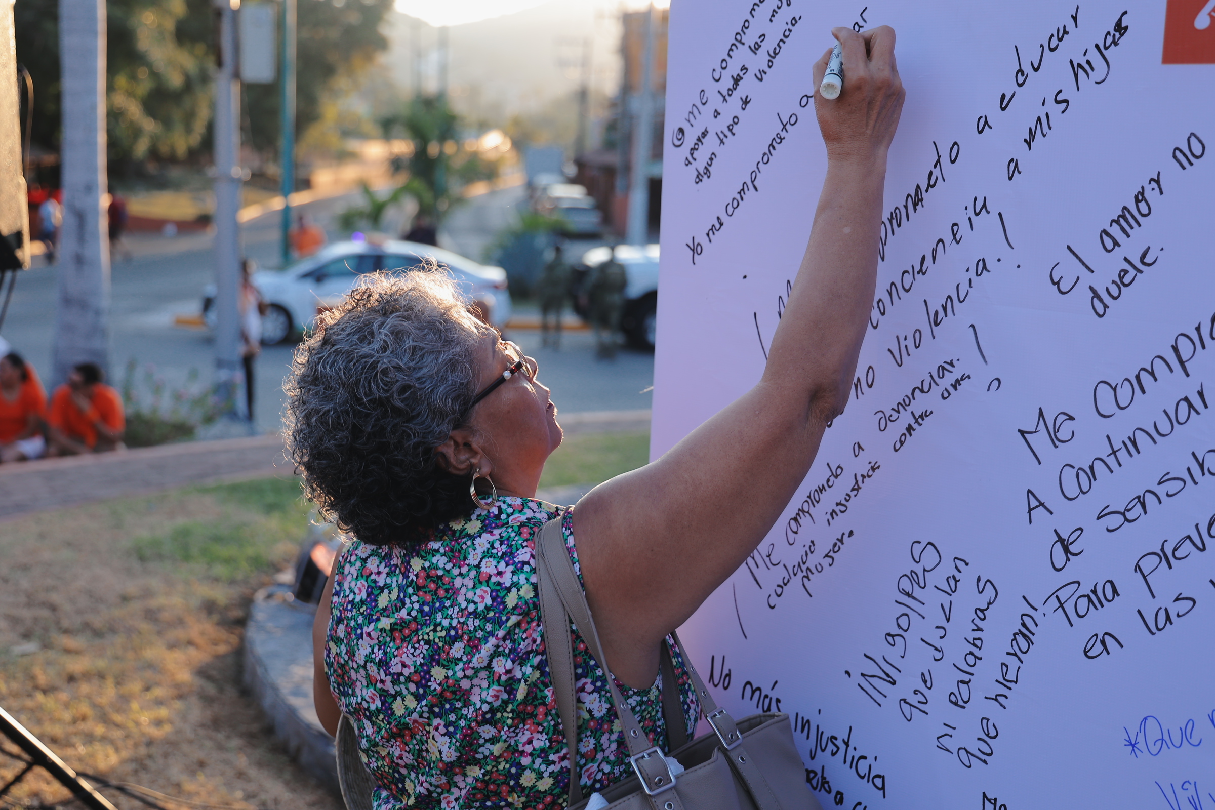 Como parte de las actividades del Mes Naranja, se realizó la marcha pacífica de Plaza Kioto a la Cancha Municipal, encabezada por la presidenta municipal Lizette Tapia Castro, funcionarios y colaboradores del gobierno, así como ciudadanos. La marcha, con alrededor de 500 participantes, llegó a la Cancha Municipal, donde se llevó a cabo la Quincuagésima Cuarta Sesión Ordinaria del Sistema Municipal para Prevenir, Atender, Sancionar y Erradicar la Violencia contra las Mujeres.