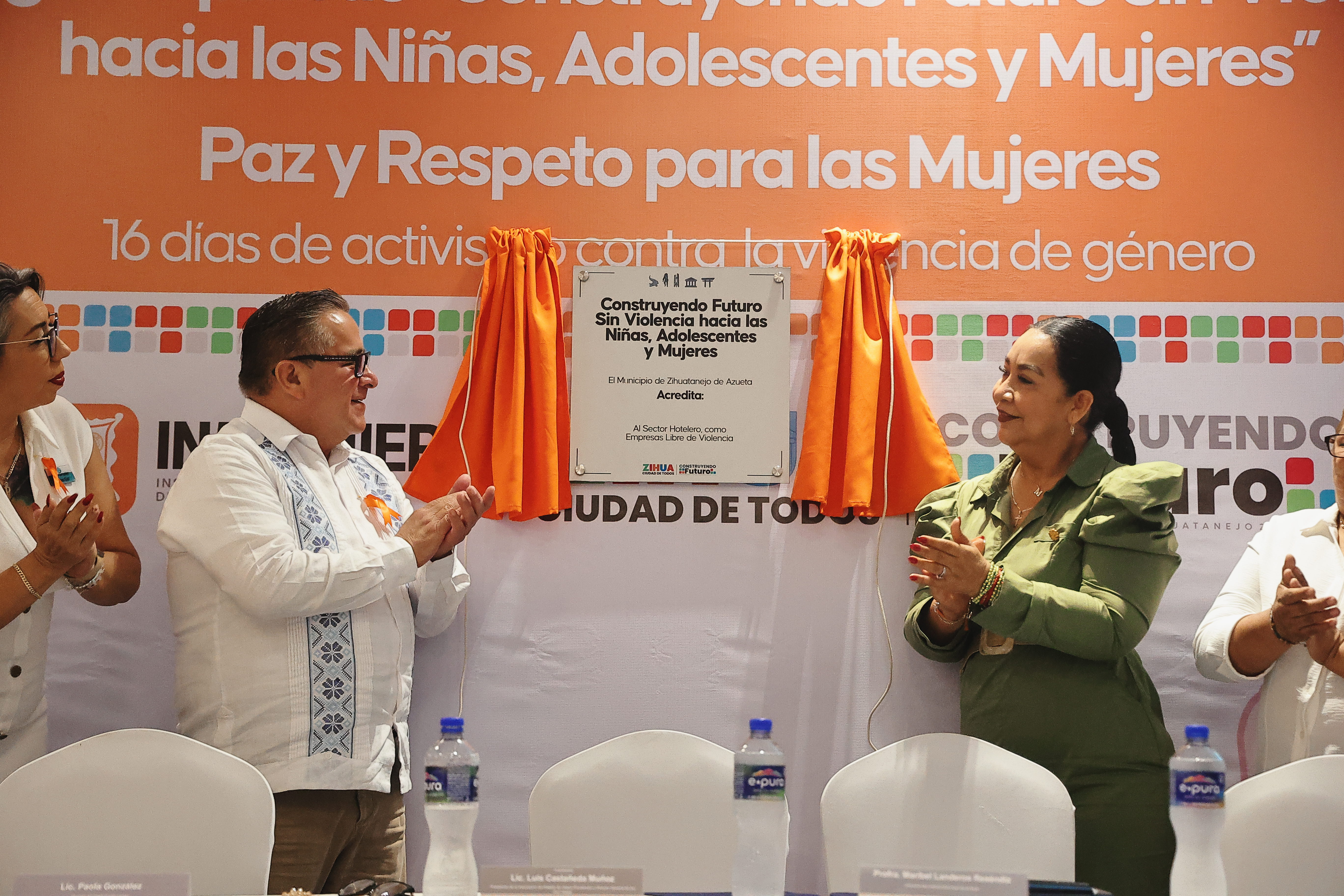 Zihuatanejo de Azueta., 05 de diciembre.– El gobierno que encabeza la presidenta Lizette Tapia Castro reconoció, con la entrega de las placas de acreditación correspondientes, la participación activa que seis hoteles de la zona de Ixtapa han tenido en las acciones del proyecto Construyendo Futuro sin Violencia hacia las Niñas, Adolescentes y Mujeres, el cual se desarrolla a través del Instituto Municipal de la Mujer.