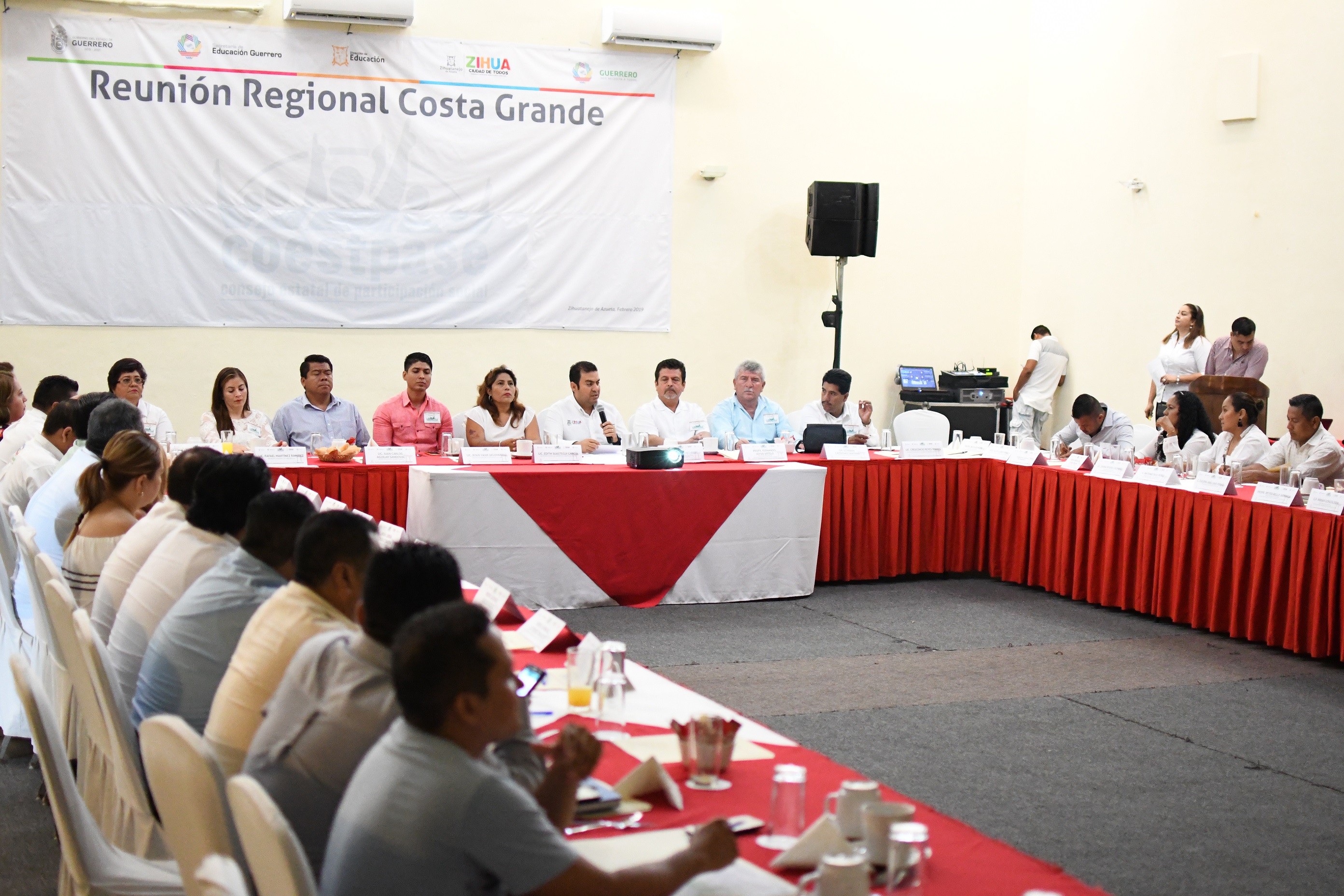 Se llevó a cabo en Ixtapa la Reunión de Trabajo Regional Consejo Estatal de Participación Social (COESTPASE), donde los Consejos Municipales de Participación Social en la Educación (COMUPASE) de la Costa Grande presentaron su Plan de Trabajo. El Presidente municipal Jorge Sánchez Allec, dio la bienvenida a directores, supervisores, jefes de sector y profesores que participan en estos consejos, y comentó que tanto El COESTPASE como los COMUPASE representan una oportunidad de apoyar el trabajo educativo en las diferentes instituciones de educación básica. “Deseamos que esta reunión de trabajo sea productiva en beneficio de los alumnos de nuestra región Costa Grande”, señaló Jorge Allec, quien estuvo acompañado por la primera Síndica Margarita Díaz Rueda, y la directora de Educación, Mayra Ruiz Pineda.